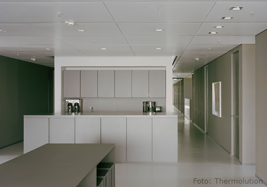 Heiz- und Kühldecken erzeugen keine spürbare Zugluft. Allergikerfreundlich und staubarm sorgen sie für ein angenehmes, gesundes Raumklima.